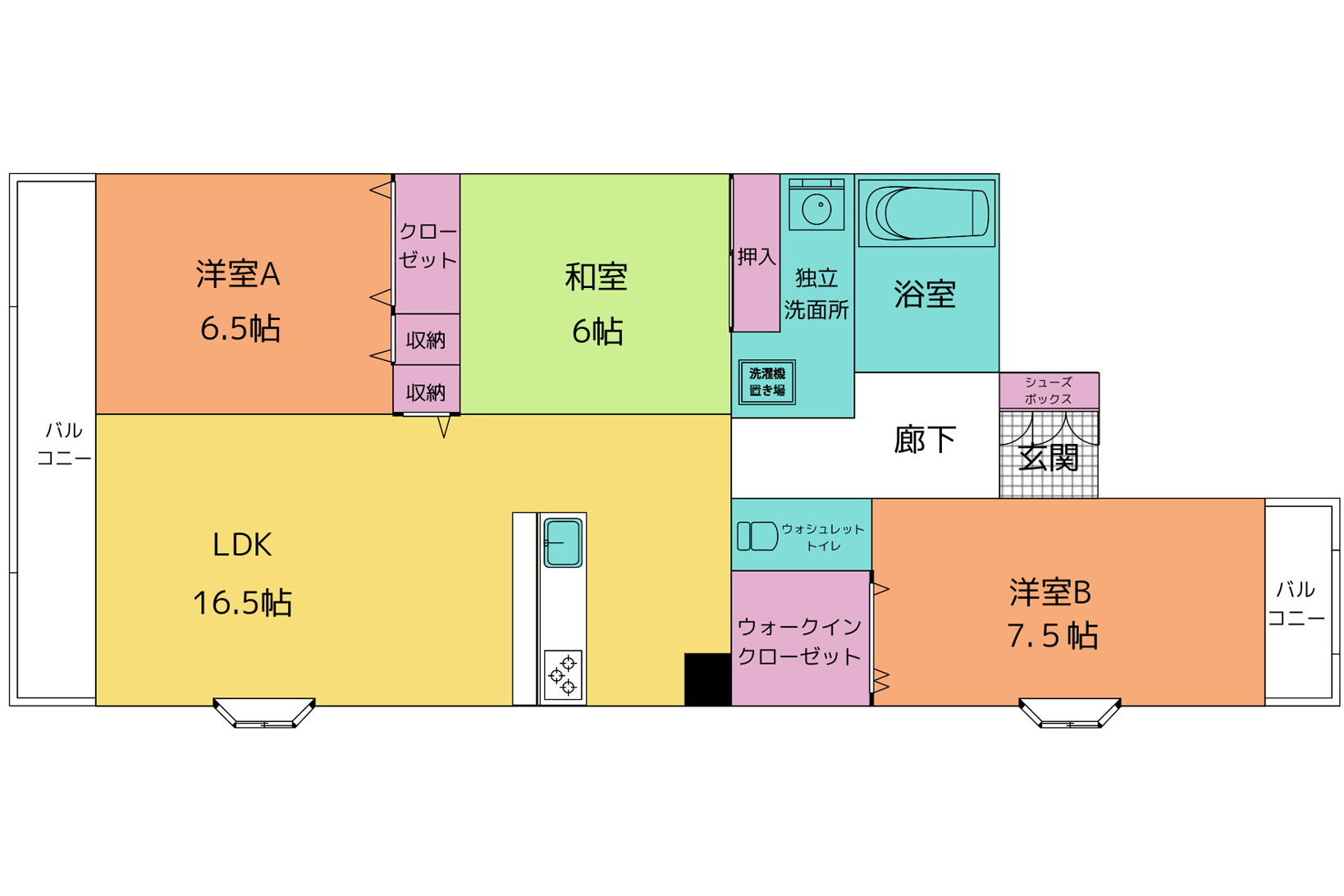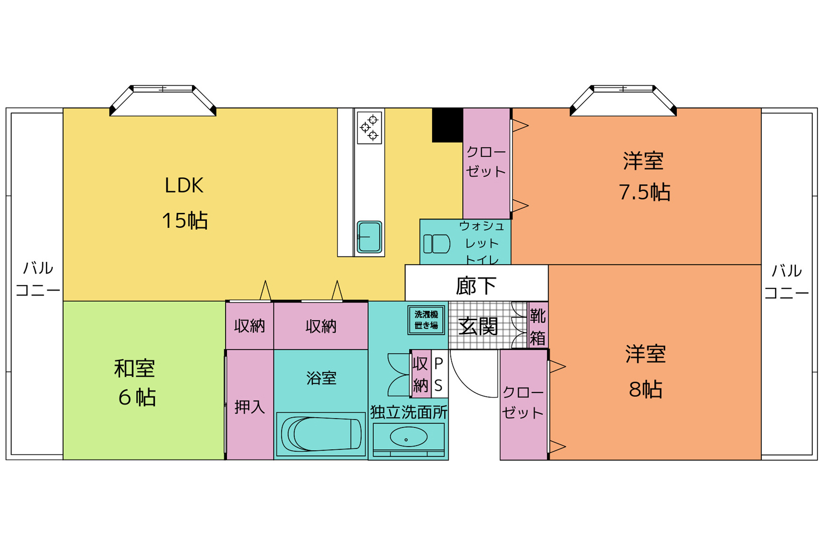 | 間取面積 | 1LDK/2LDK/3LDK いずれも85.16㎡ |